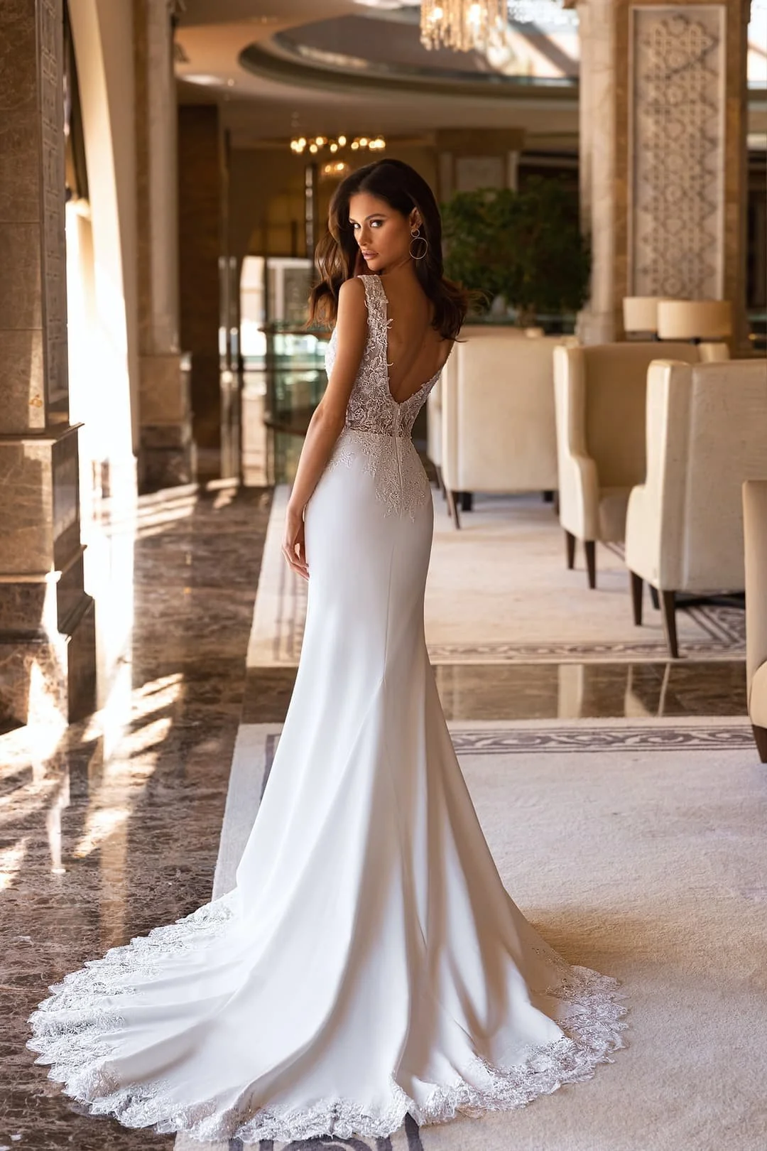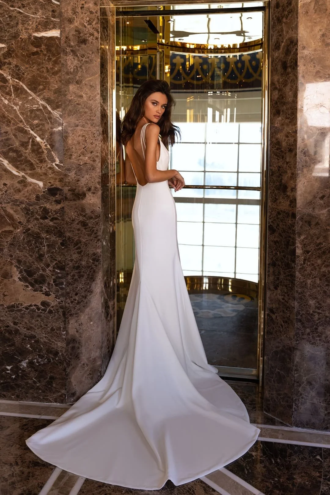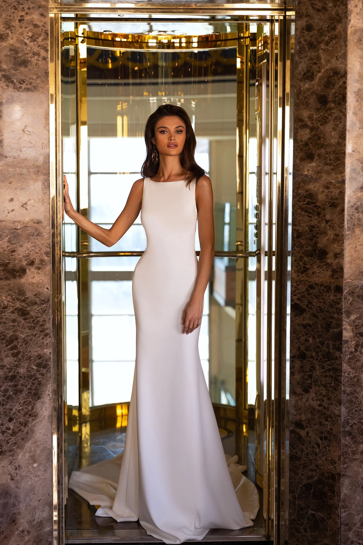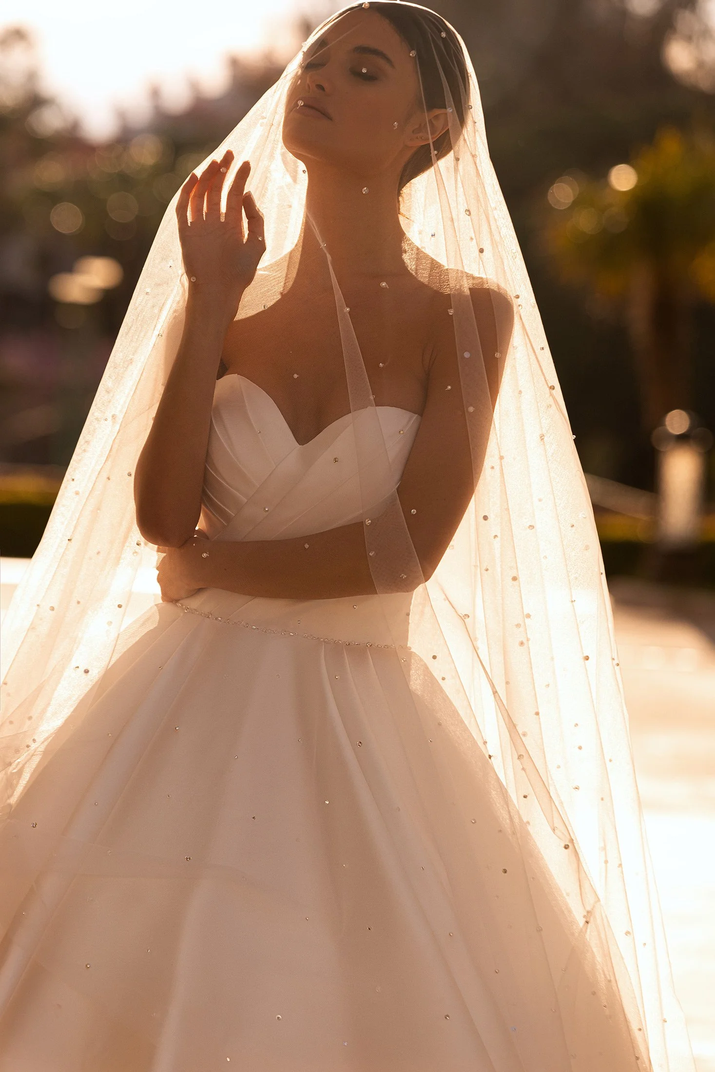 Aria Bridal is for the bride who loves clean lines, sophisticated silhouettes, and modern minimalism. This collection is perfect for those who appreciate understated beauty with high-fashion elements, offering sleek satins, architectural draping, and refined details. Aria gowns are effortlessly chic—ideal for brides who want a timeless look with contemporary appeal.
